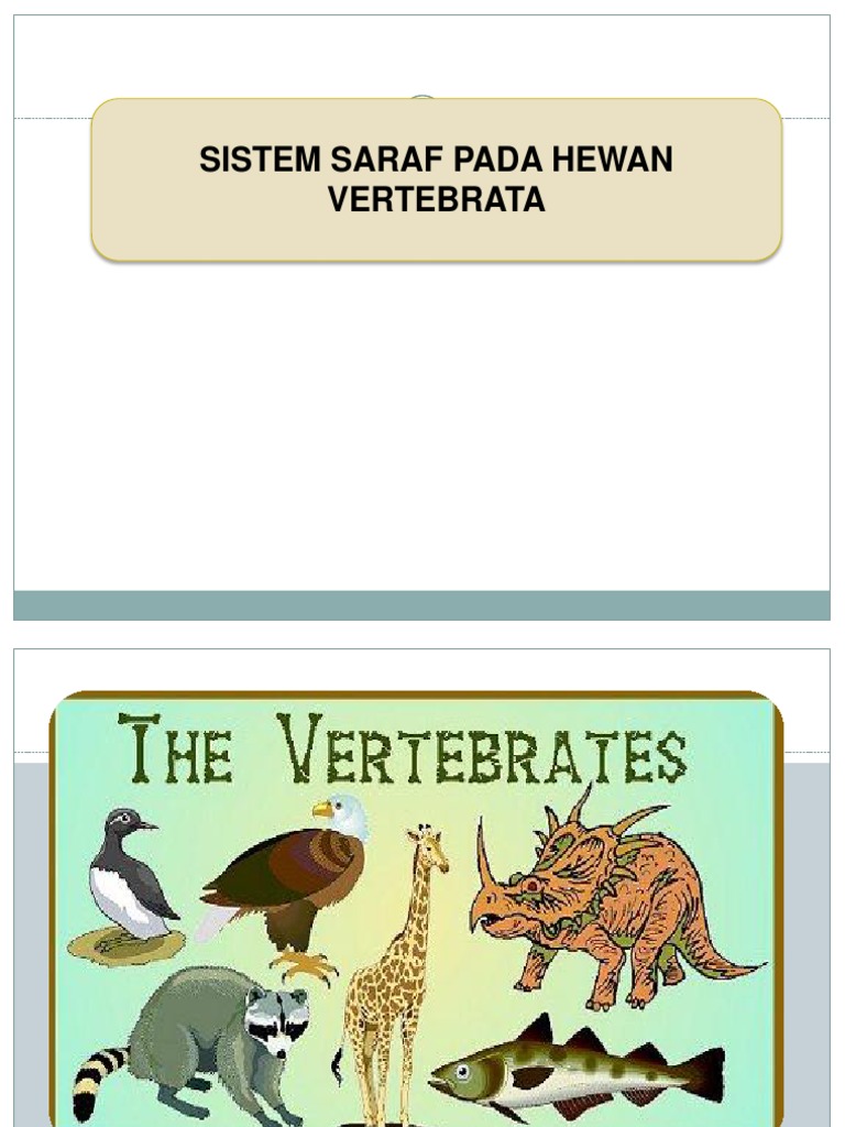 Hewan vertebrata juga memiliki sistem saraf yang lebih baik daripada invertebrata. Hewan mamalia ini jumlahnya sampai di angka 5.000 genus, dan menjalar dalam 425 keluarga serta mencapai angka 46 ordo bergantung pada klasifikasi ilmiahnya. Sistem saraf merupakan salah satu bagian yang menyusun sistem koordinasi yang bertugas menerima rangsangan halaman all. Sumsum tulang belakang (medula spinalis) 1. Hewan monotremata atau hewan mamalia bertelur tidak mempunyai puting susu tetapi tetap memiliki kelenjar susu.